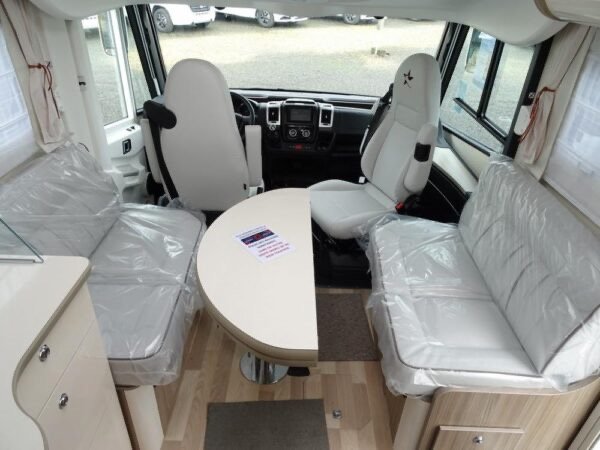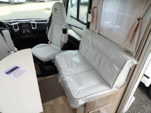 • CONSTRUCTION CELLULE PROTEC-STAR (Isolation et rigidité renforcées, Protection polyester épais sur toute la cellule, bas de caisses robustes en aluminium, Double plancher technique avec rangements intérieurs et extérieurs sur toute la largeur, Protection de soute renforcée, Rails de fixation et anneaux d’ancrage réglables dans la soute, Baies Seitz double vitrage, isolation thermique et phonique renforcée par une épaisse mousse au plafond, Garantie étanchéité 7 ans)