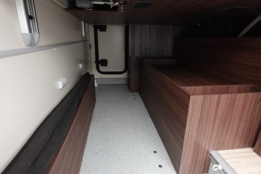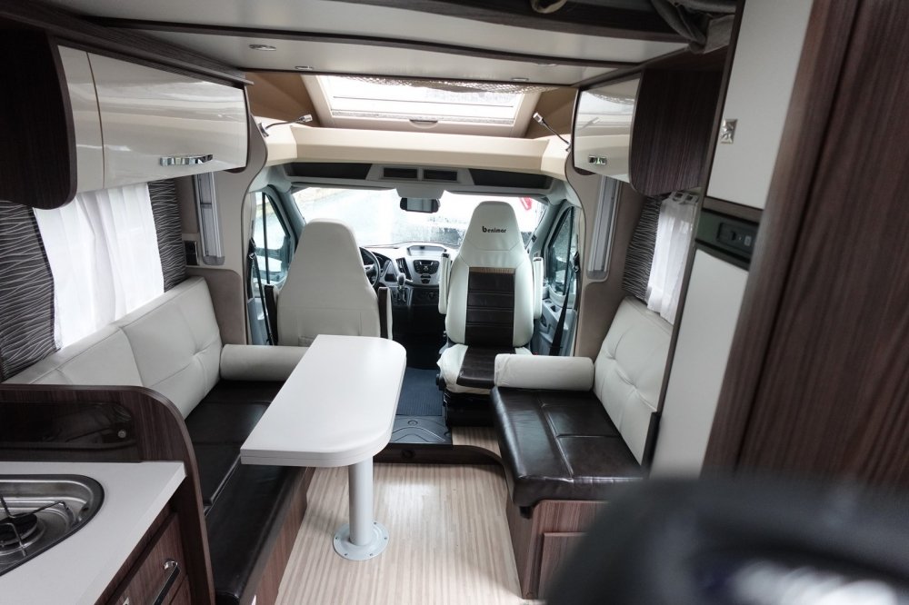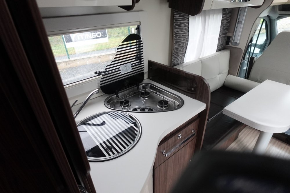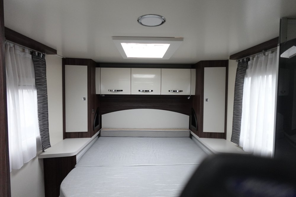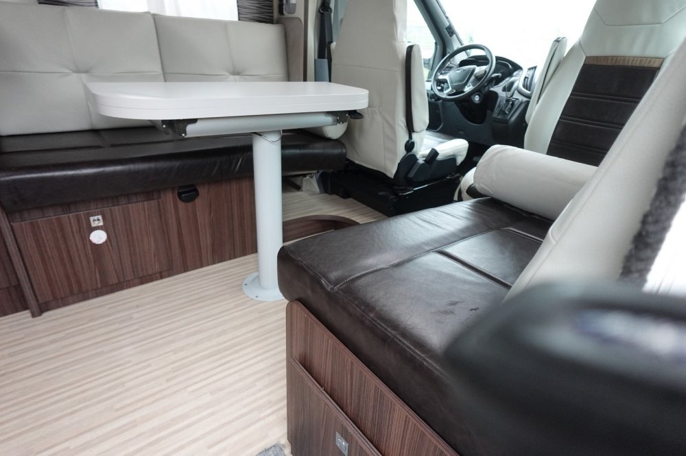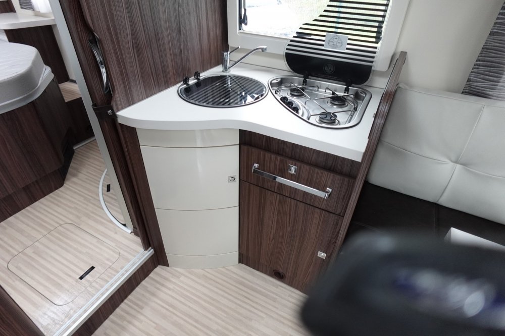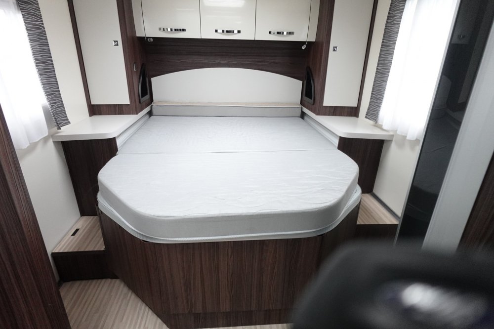 - Profilé comprenant un salon avant panoramique avec banquette face / face, une douche indépendante de l’espace WC/lavabo, un lit central, un lit de pavillon 2 places et une cuisine en L avec de nombreux rangements.