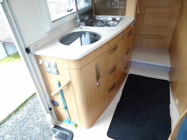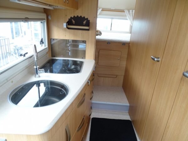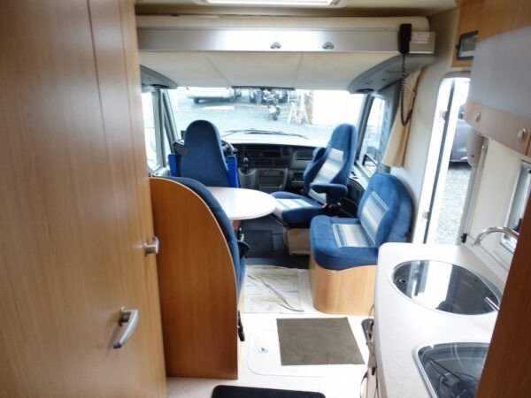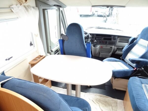 - Intégral haut de gamme comprenant un lit arrière sur soute réglable en hauteur, une salle d’eau avec une douche séparée, une très grande penderie, une cuisine avec de nombreux rangements, un salon avant panoramique et un lit de pavillon électrique. Le grand plus : Double plancher et châssis Al-Ko.