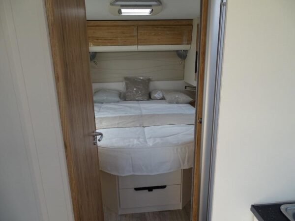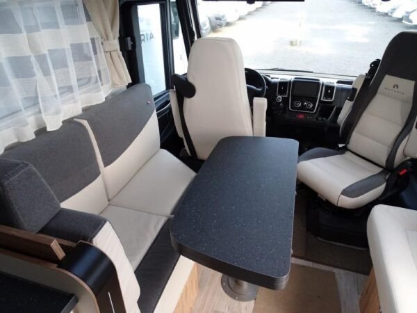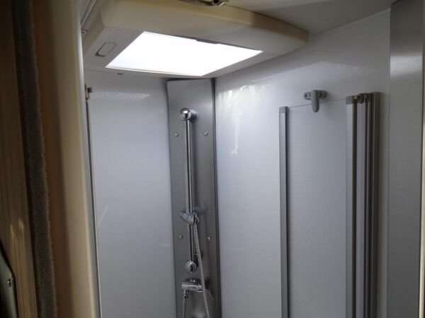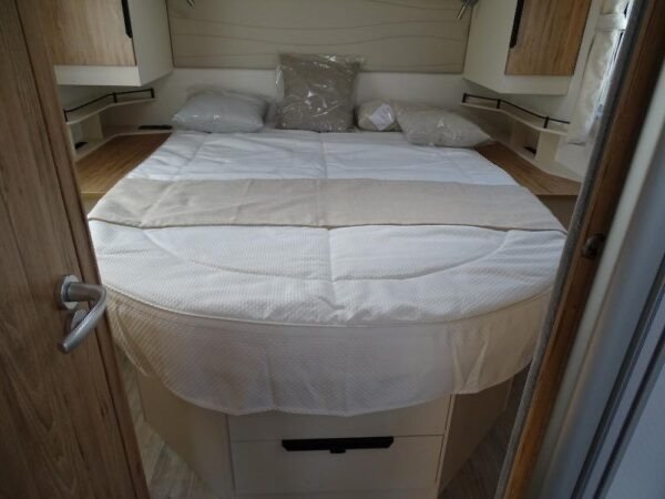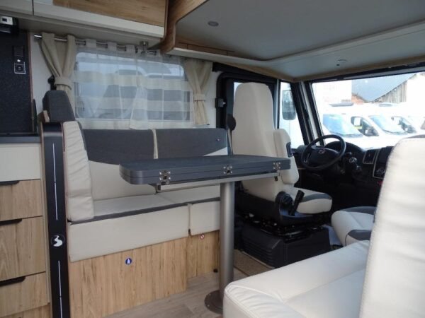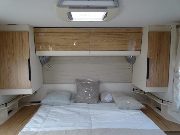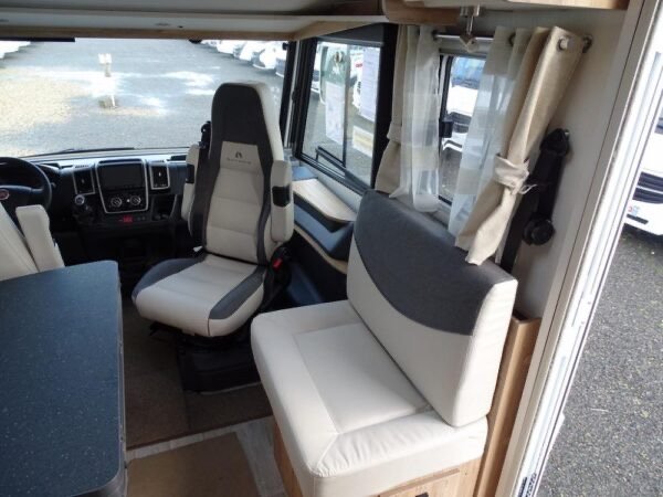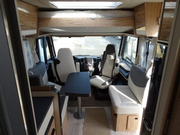 - Intégral haut de gamme comprenant lit central, douche indépendante de l’espace WC / lavabo, cuisine en L, salon panoramique face à face et lit de pavillon.