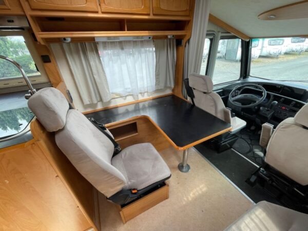 - Radio DAB FIAT DUCATO 2.8 Automatique ! Trois essieux avec franz. Lit double longitudinal Version de siège de bar avec 3 sièges individuels, extension de table Beaucoup de pièces neuves (plus de 15.000,- investi !) : * tous les coussins neufs ! * tous les rideaux avec un matériau opaque neufs ! * tous les stores de cassette d’habitation neufs !