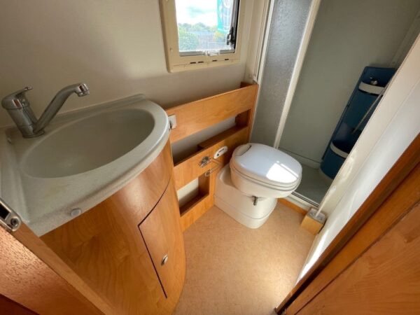 - Siège conducteur rotatif CHAUFFAGE/CLIMAT* Chauffage au gaz CUISINE* Réfrigérateur avec compartiment à gel * Réfrigérateur AES * Réchaud à 3 flammeS SANITAIRE* Toilettes à cassettes * Affichage du réservoir d’eau douce * Salle de bain * Douche séparée *
