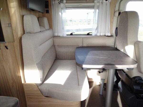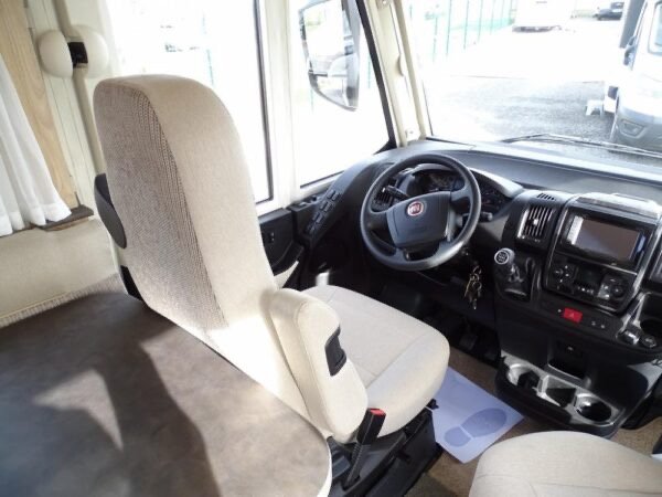 Magnifique intégral compact haut de gamme comprenant lit de pavillon escamotable, salon avant panoramique, salle d’eau avec douche séparée, cuisine avec de nombreux rangements, grand réfrigérateur et lit sur soute garage. Le tout en moins de 6 mètres.