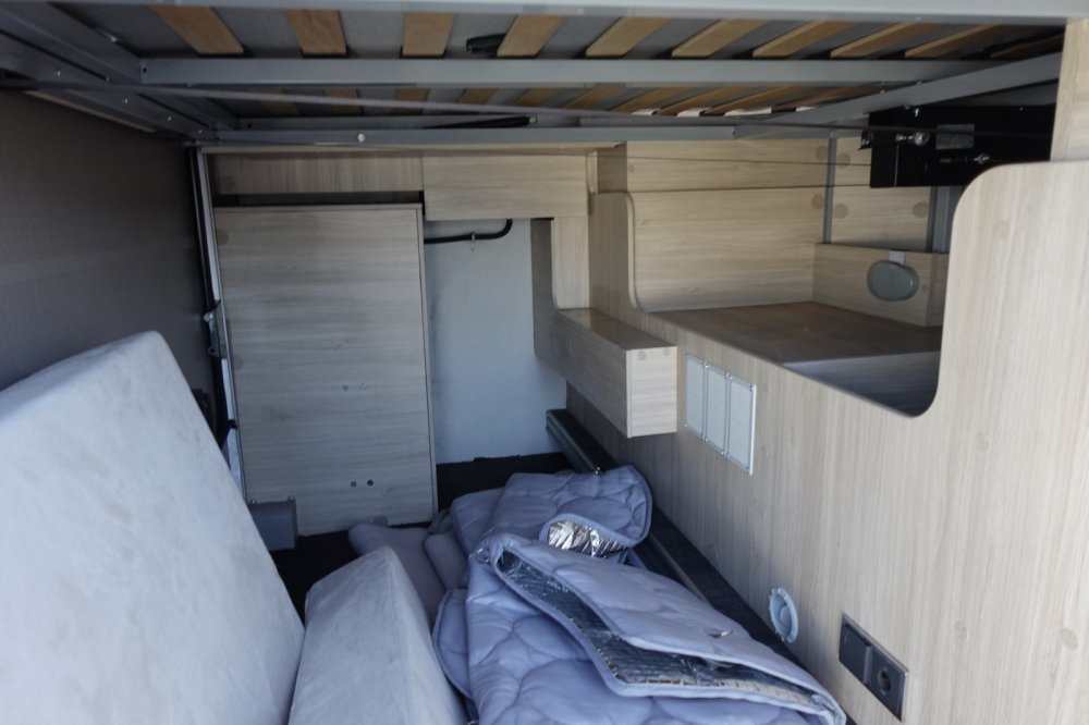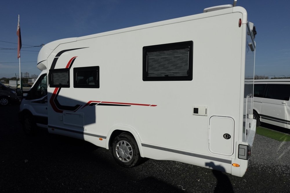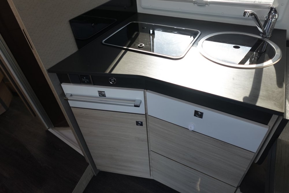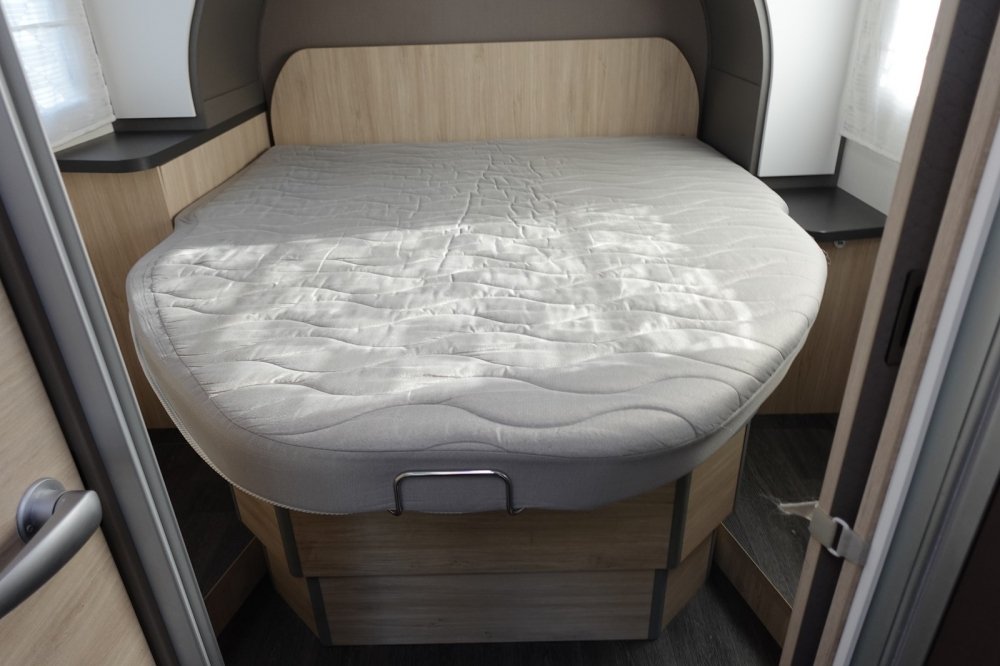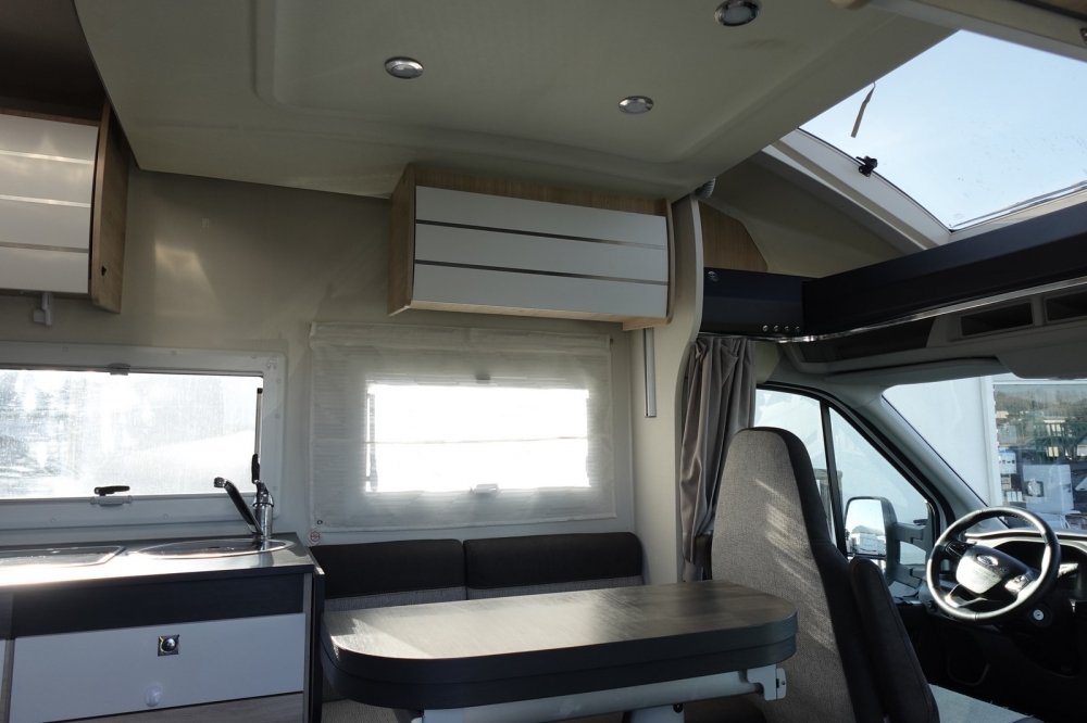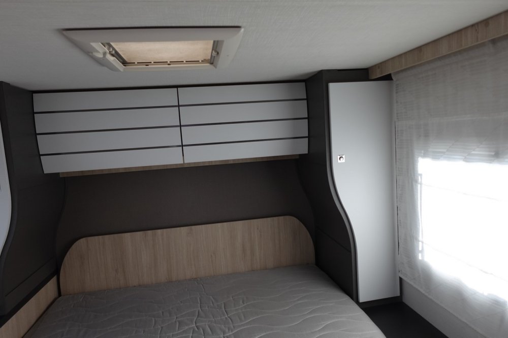 - Profilé comprenant un lit central, Une cuisine en L avec de nombreux rangements, Une douche indépendante de l’espace WC / lavabo, un salon avant panoramique et un lit de pavillon.