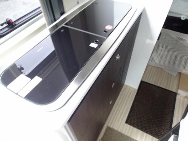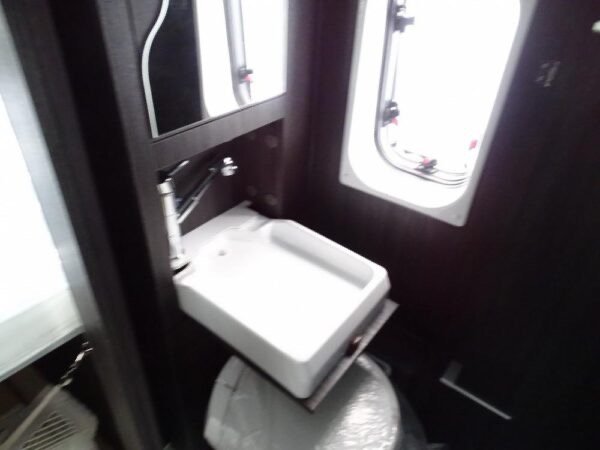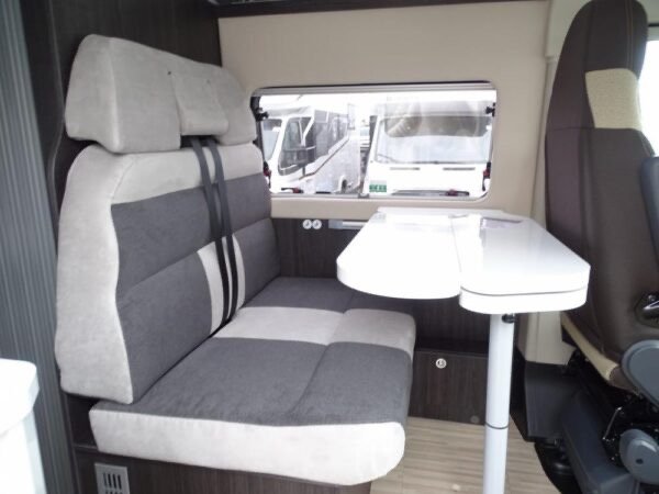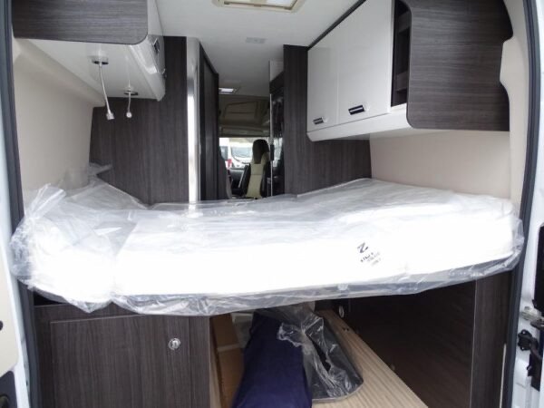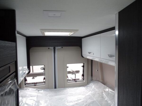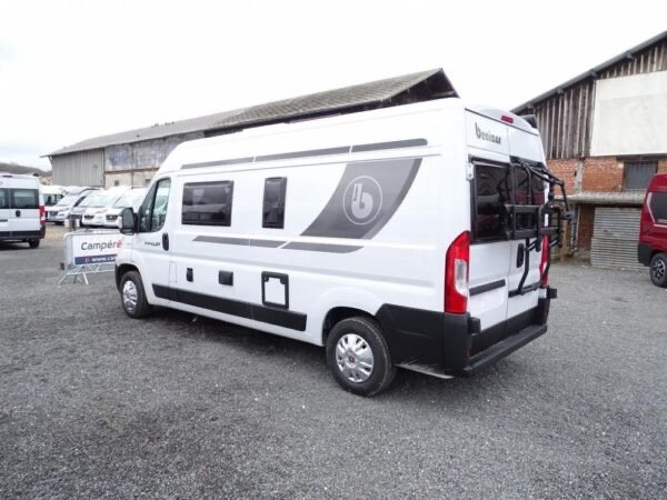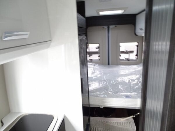 - Fourgon déjà tout équipé et prêt à partir comprenant lit transversal arrière, salle d’eau avec douche, cuisine avec de nombreux rangements, grand réfrigérateur et salon avant panoramique.