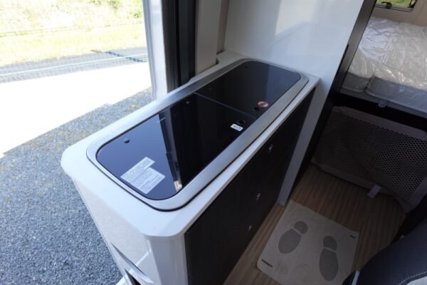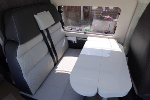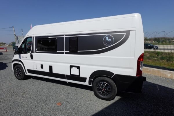 • Fourgon aménagé comprenant un salon avant panoramique, une salle d’eau avec douche, un grand lit double arrière et une cuisine avec de nombreux rangement + un grand frigo.