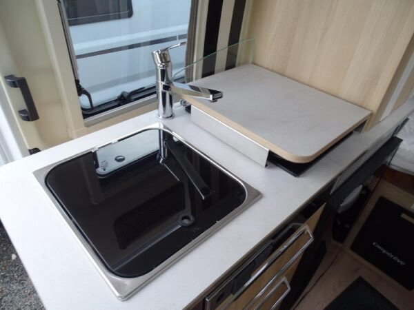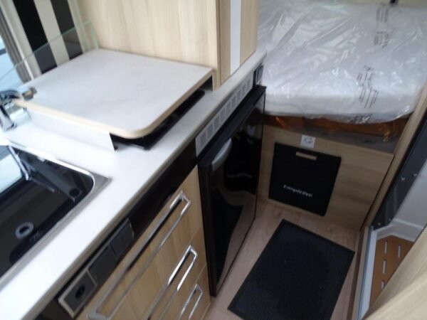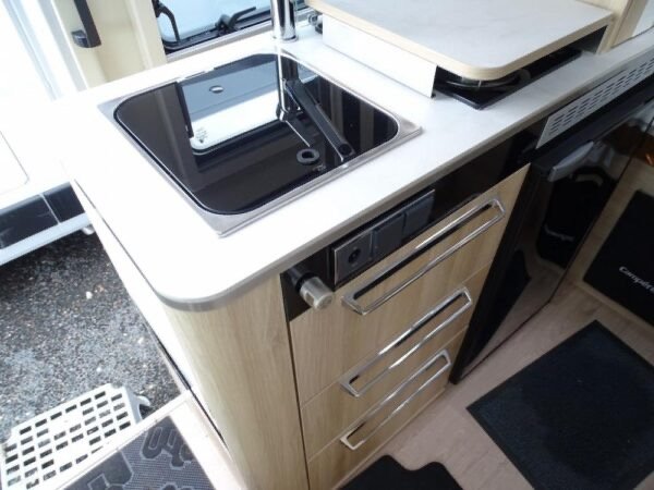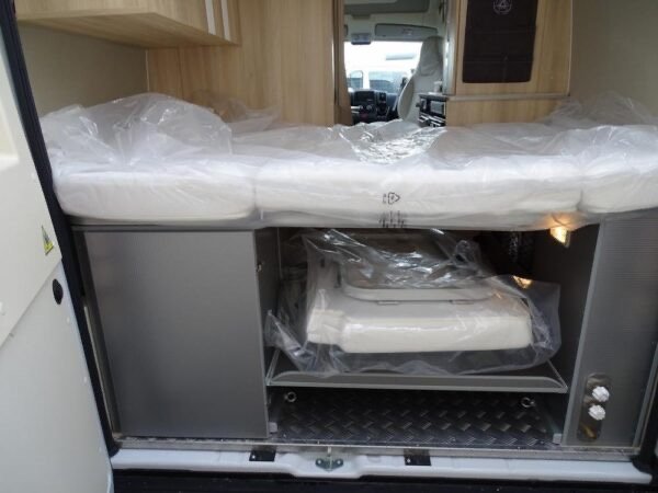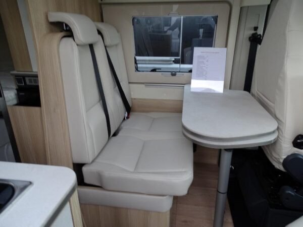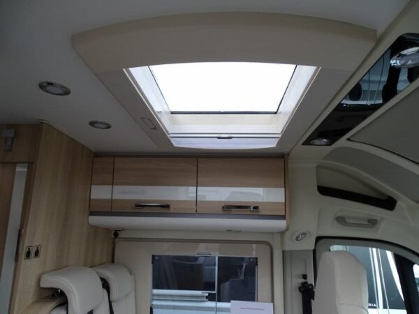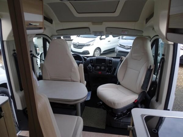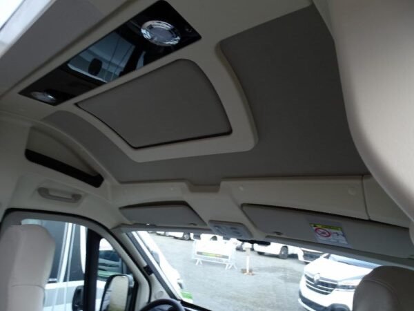 - Fourgon aménagé comprenant salon avant panoramique, salle d’eau Duo’Space avec paroi pivotante, lit arrière transversal et cuisine avec de nombreux rangements. Le tout en 5.41 m de long.