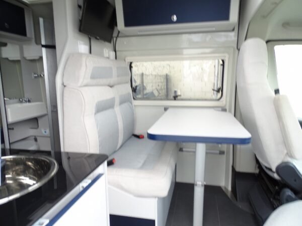 Magnifique fourgon comprenant salon avant panoramique, salle d’eau TB concept avec douche séparée, lit transversal arrière, grand réfrigérateur et cuisine avec de nombreux rangement.       FONT VENDÔME LEADER VAN   Magnifique fourgon comprenant salon avant panoramique, salle d’eau TB concept avec douche séparée, lit transversal arrière, grand réfrigérateur et cuisine avec de nombreux rangement.   Longueur : 5.99 m Largeur : 2.05 m Hauteur : 2.57 m   EQUIPEMENTS PORTEUR :   Fiat Ducato 2.3L 140 CV DIN 17500 km Mise en circulation le 18/08/2020 Places couchages 3 Places carte grise 4 Châssis 3500 Kg Rétroviseurs électriques et dégivrants Vitres électriques Stores occultation cabine type REMIS Fermeture centralisée à télécommande ESC + ESP Régulateur de vitesse Climatisation cabine Volant réglable en profondeur Autoradio multimédias avec grand écran + Bluetooth Sièges conducteur et passager tournants, hauteur et accoudoirs réglables Sièges cabine habillés avec tissu cellule Caméra de recul EQUIPEMENTS CELLULE :   Fenêtres double vitrage extra plates Moustiquaire de porte cellule Marchepied électrique Eclairage extérieur Grand réfrigérateur Combiné chauffage / chauffe-eau diesel (Truma Combi D4) Batterie auxiliaire Panneau solaire Store extérieur Porte 2 vélos Climatisation cellule Antenne TV hertzienne Salle d’eau TB concept avec douche séparée Douchette extérieure WC cassette GARANTIE SECURITE PLUS OPTEVEN :   Pour partir l’esprit tranquille, nous vous proposons une garantie de 12 mois très performante comprenant :