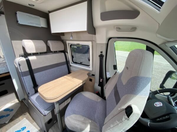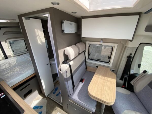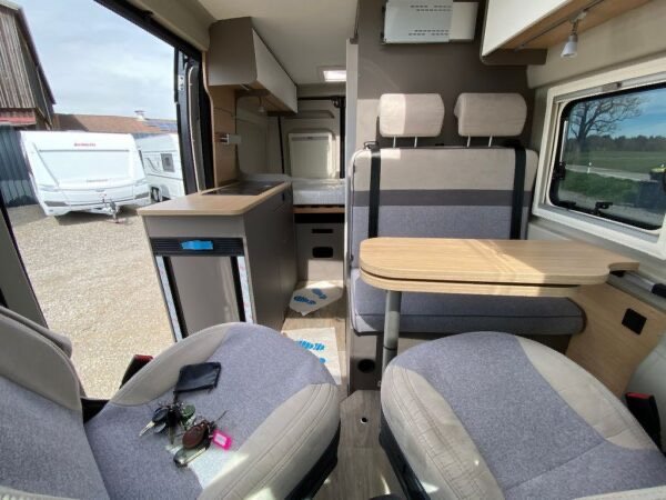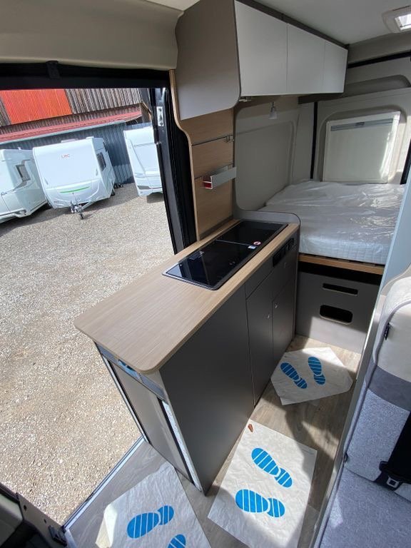 • Véhicule de base : FIAT Ducato * Hauteur intérieure : 190 cm * Poids à vide : 2459 kg * Masse en véhicule. État : 2630 kg * Charge : 3500 kg * Lits : double/français. Lit * Surfaces de couchage : Arrière (195×133/130) * Chauffage : Combi 4 * Volume du réfrigérateur : 70 l Stock d’eau : 100 l * Volume du réservoir d’eaux usées : 90 l * Batterie : 95 Ah * Rembourrage : Granit * Prises 230V : 3 * Prises 12V : 1 * Couleur : noir Autres équipements CHAUSSÉE * ASR * Verrouillage centralisé * Électrique. Vitres * Rétroviseurs électriques * Volant multifonction * Jantes en aluminium * Réservoir diesel plus grand * Rétroviseurs chauffants * Airbag conducteur * Airbag passager * Feux diurnes * * Start Stop MONTAGE automatique * Niveau d’entrée électrique * Fenêtre de levage-bascule * Auvent *