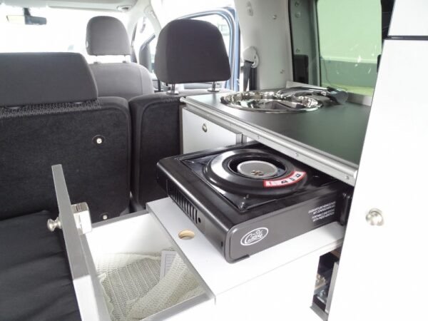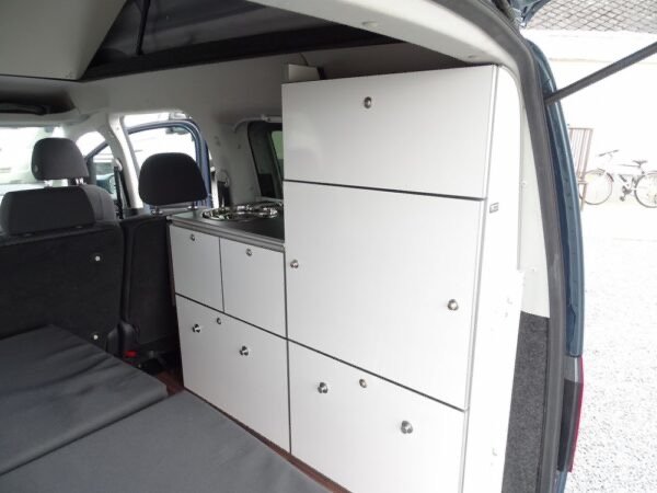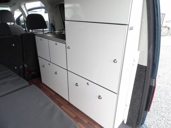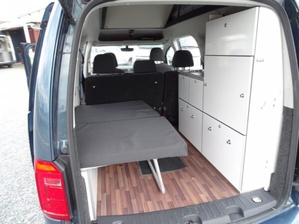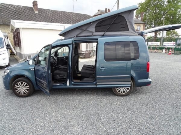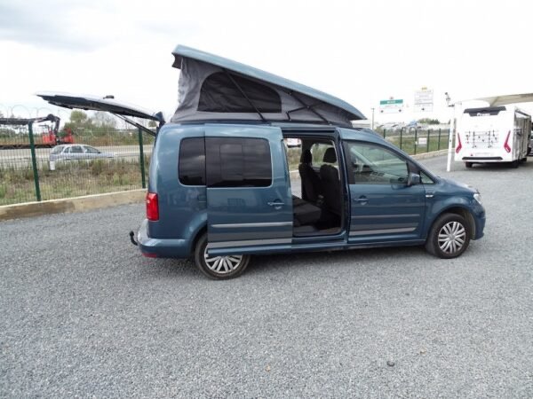 - Le caddy Camp, le mini-camper pour vos vacances et vos loisirs. Avec son équipement camping complet et son toit relevable avec lit, le Caddy Camp est le compagnon idéal dans la vie de tous les jours ou pour les loisirs de toute la famille grâce à ses 5 places carte grise. Compact et très modulable, le Caddy Camp promet des weekends ou des vacances prolongées en toute simplicité. Sa petite taille et sa discrétion lui permettent d’aller partout (1,96m avec toit), il reste en classe 1 sur les péages et ferrys. Approche des centres-villes, des plages, des sentiers de randonnées…