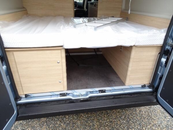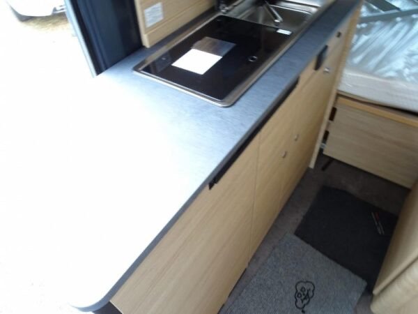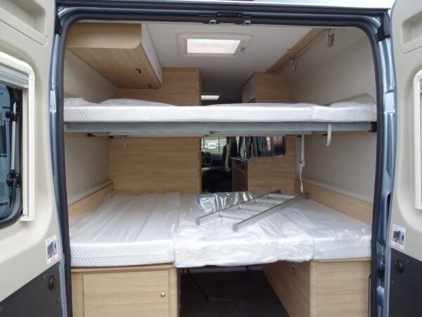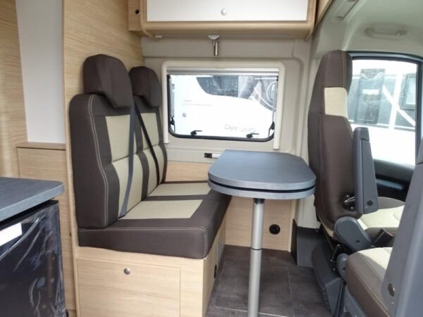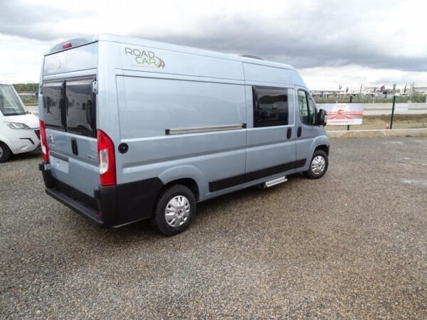 - Ce Roadcar de 5.99 m de long offre un grand plan de travail avec beaucoup de rangement pour vos ustensiles, une dinette agréable et confortable, une salle d’eau avec douche et WC et 2 lits double arrière.