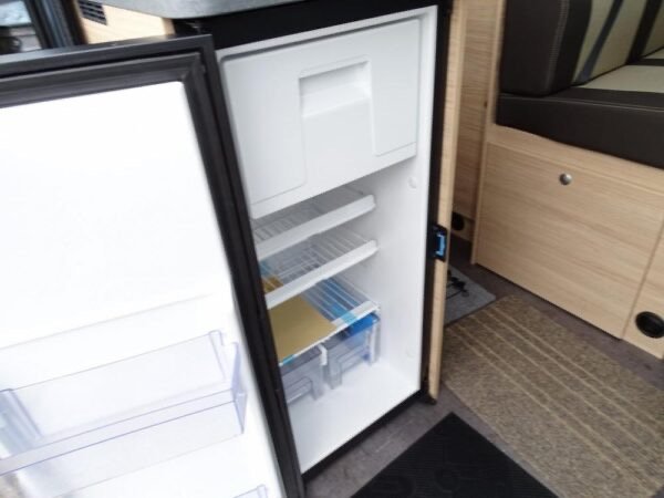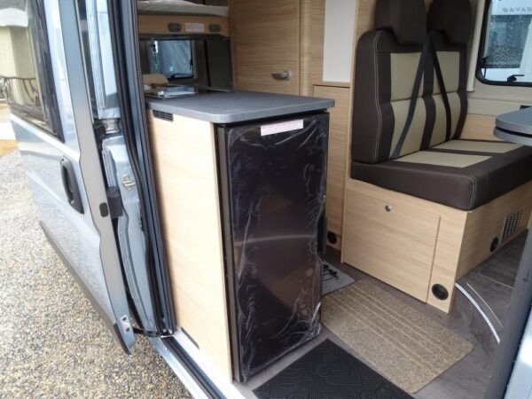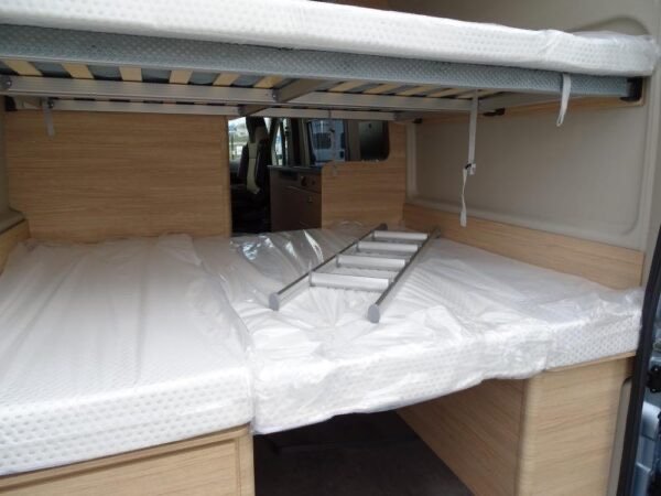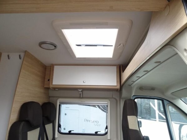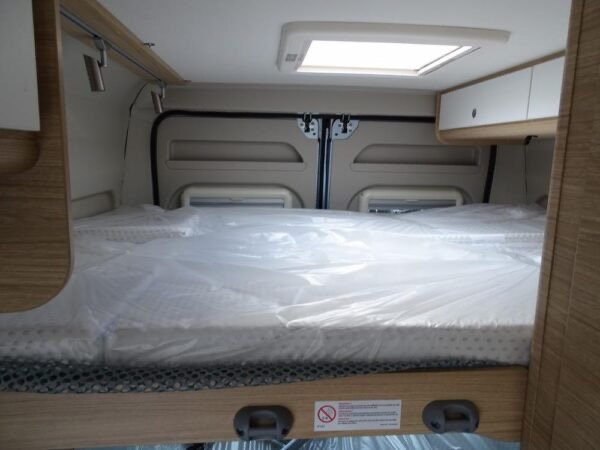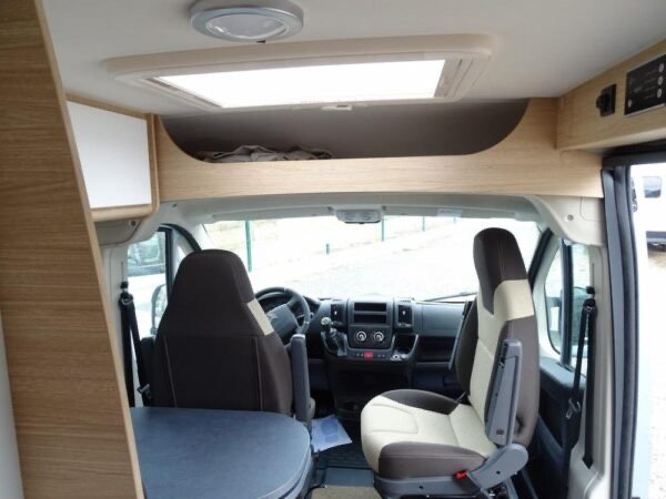 - PACK CONFORT : 1099 € (Marchepied électrique, Moustiquaire de porte latérale, Lanterneau Midi Heki au-dessus de la dinette, Rideau occultant cabine, Equipement de douche)