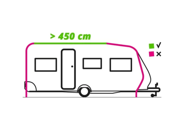 Le Obelink Markies convient seulement dans la partie droite (horizontale) du rail de caravane. C’est pourquoi il faut toujours mesurer à l’avance la longueur exacte de ce bout de rail. Si, par exemple, vous avez un rail de caravane droit de 410 cm, alors le store Obelink Markies d’une longueur de 400 cm convient parfaitement.