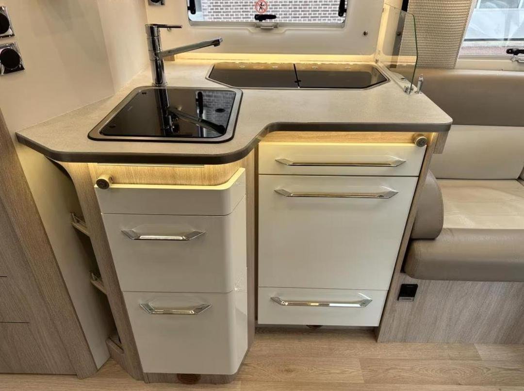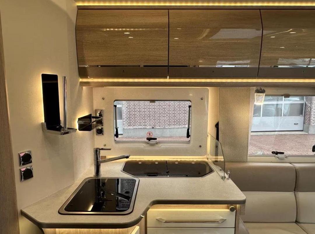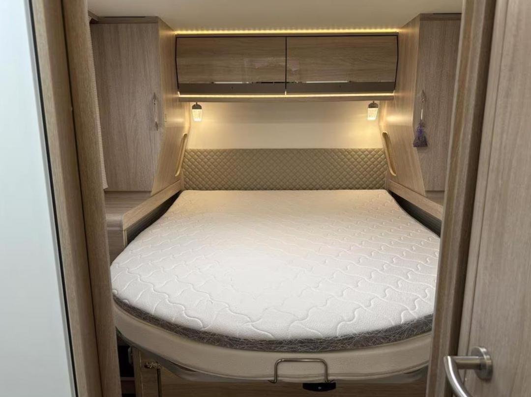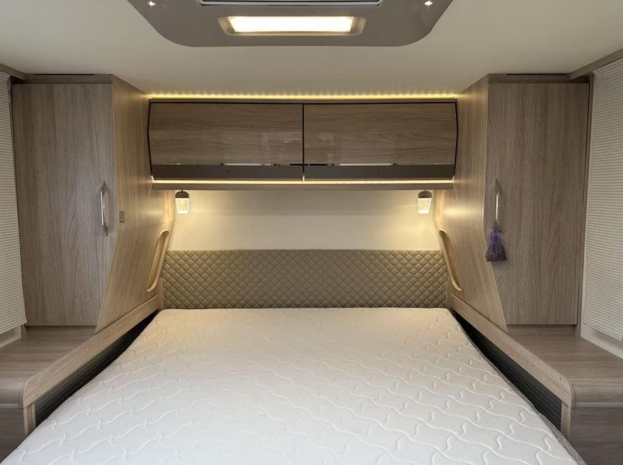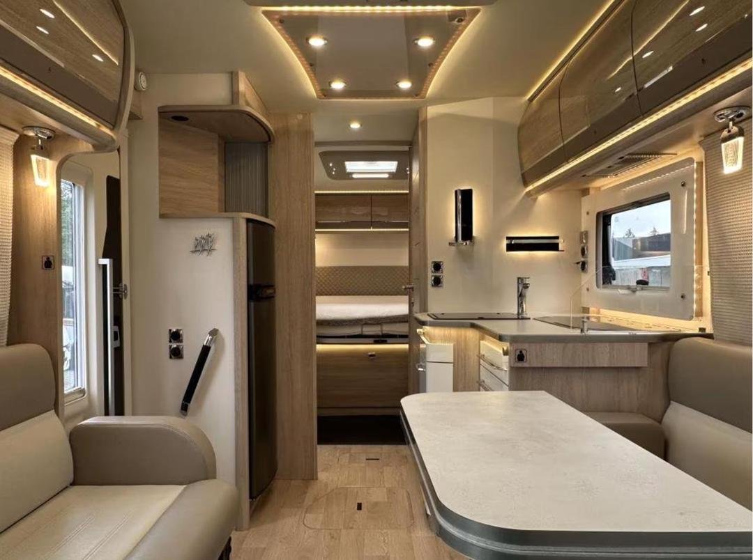 Version haut de gamme sur châssis AL-KO renforcé 4 400 kg, motorisé en Fiat 2.3L 160 ch avec boîte automatique 9 rapports, il offre une capacité de charge exceptionnelle et un confort premium, été comme hiver grâce à son double plancher chauffant.