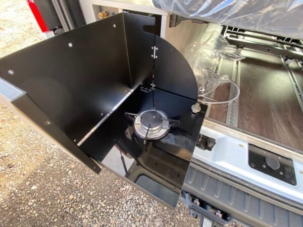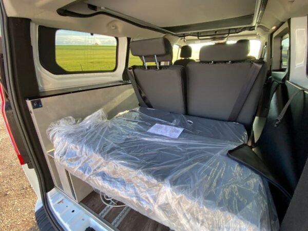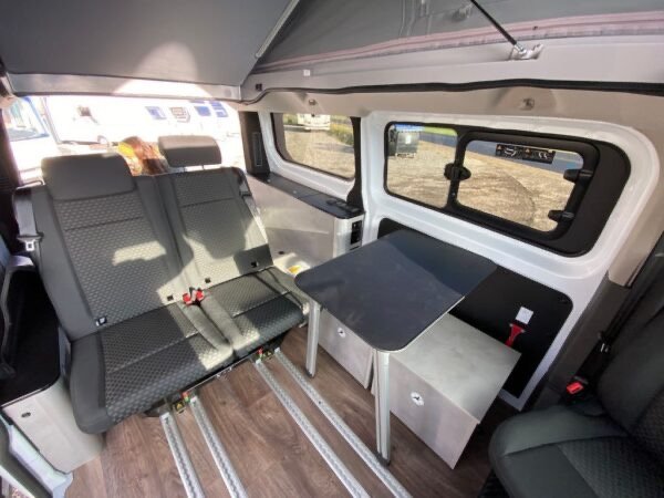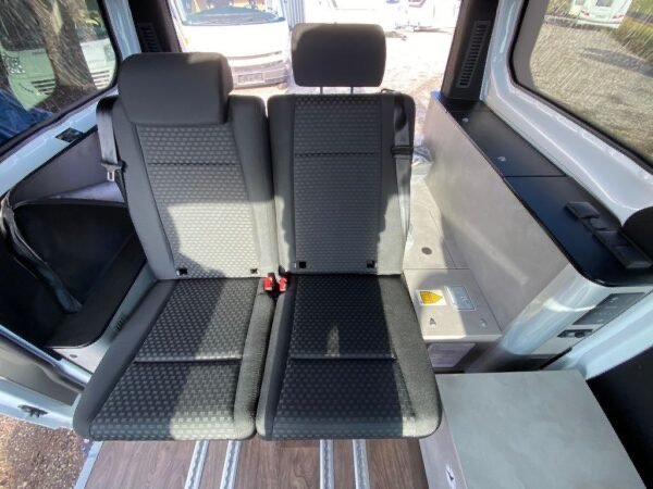 - Équipement Pack V1 avec assistance au maintien de la voie, Pack visibilité, Pack audio avec DAB+Radio, Marchepied porte coulissante à droite, 2 feux col de cygne avec connexions USB dans le toit ouvrant, chauffage stationnaire diesel, douche extérieure , banquette de couchage coulissante sur rails